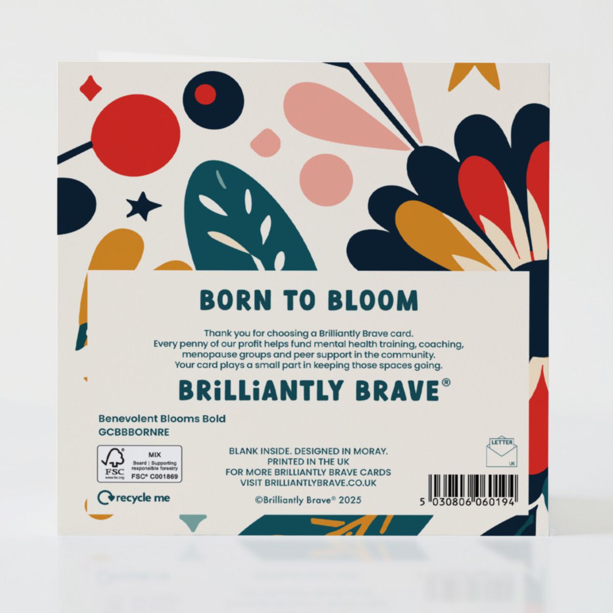 Perfect for new beginnings, milestones or simply cheering someone on. Uplifting without being over the top. Created in collaboration with Remaldi as a natural partner to the Brilliantly Brave eco-wallets. Each card helps fund free wellbeing initiatives. A small choice with meaningful reach.